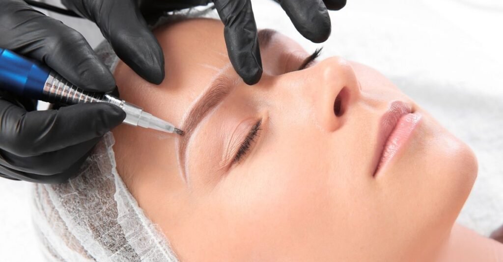 Semi-permanent cosmetic tattoo technique that creates a soft powdered makeup effect for fuller and symmetrical eyebrows.